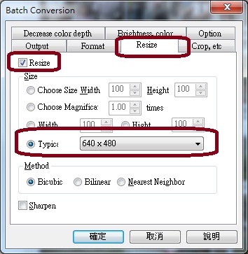 Resize 部分設定為 640 x 480 即可